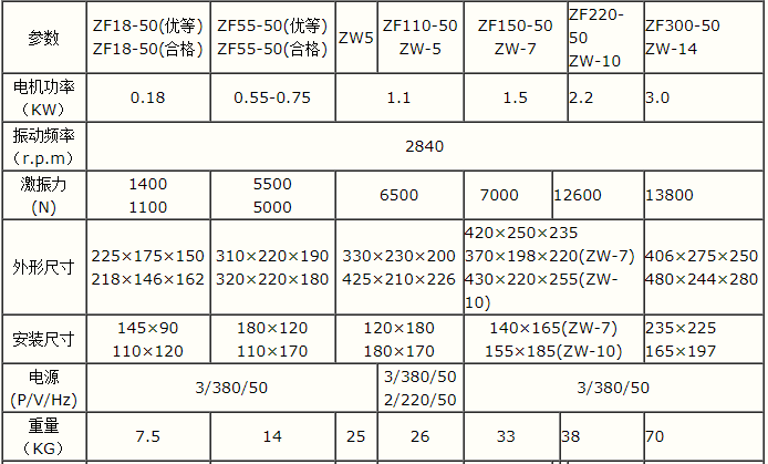 2、ZF/ZW/ZB分別注解為:附著式、外部式、平板式,只是不同型號代碼標示,沒有特別技術含義。